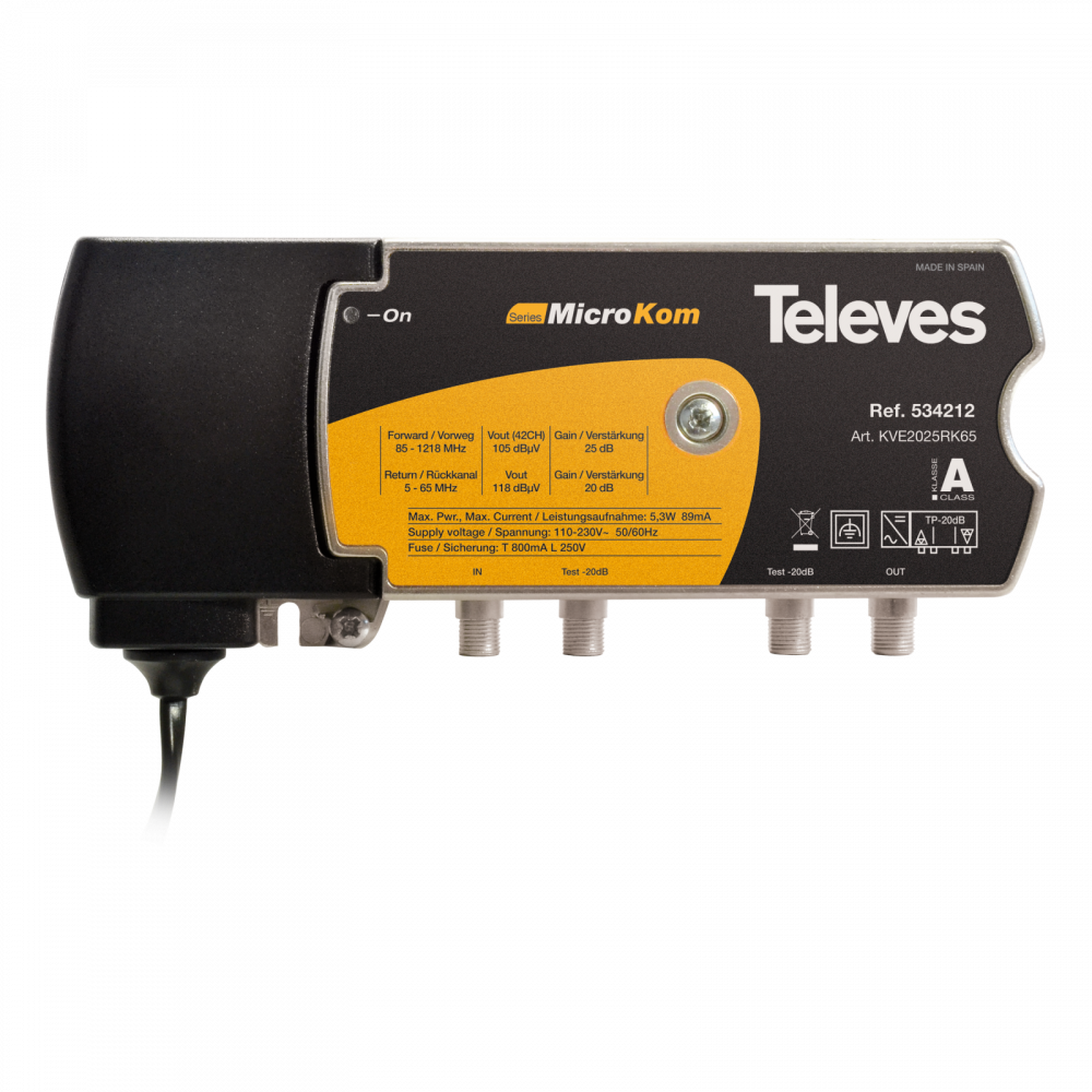 Televes MicroKom CATV versterker 1220 MHz. 25/20 dB – RB 65 MHz. pass/act